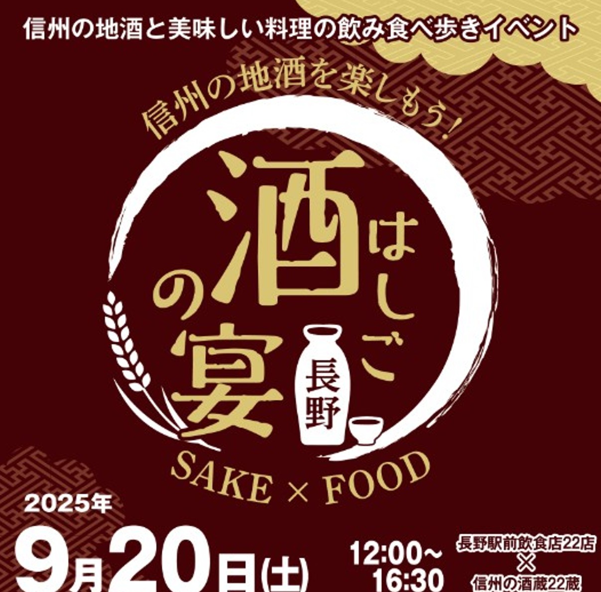長野駅前・二線路通りが歩行者天国となり、22の飲食店と22の酒蔵がずらりと並ぶこのイベントは、街を歩きながら食と酒を楽しめる“はしご酒”の祭典です。
